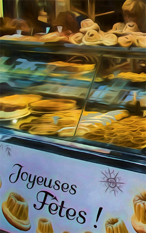 The Boulangerie in Sèvres I would love to be a kid again wave a baguette in the air, bread from the boulangerie up the hill at the end of rue de Bruyères. I would love to take it home to Mother who is in our tiny kitchen fixing dinner, teaching me words she just learned at the market petits pois, poulet, pommes de terre peas, chicken, potatoes, a meal like back home. I daydream of tomorrow and how I will amuse the bakery ladies once more with my fractured French Bonjour Mesdames. They will laugh at me then hand me a pain au chocolat for free, as always. |