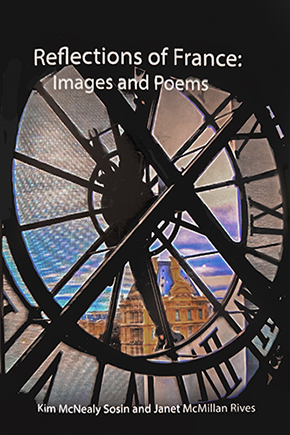 Reflections of France: Images and Poems was born when Janet and Kim reminisced over the poems and photographs they had separately accumulated from visits to France. As a child, Janet lived in Paris with her family for a year and also spent her junior year in college studying there. Kim also loves France and has been accumulating photos from various trips. As they recalled French delights, they felt a strong nostalgia for the sights and sounds of the city and countryside. From these memories, this book was born. Each opened page features one of Janet’s poems facing one of Kim’s photographs, some with an artistic impressionist appearance. Each page expresses a treasured memory of France. Filled with reminiscences of Paris at various times in the lives of the authors, this little jewel of a volume depicts, in words and images, both the beautiful and the sometimes not so beautiful facets of that iconic city. Rives remembers those days with a kaleidoscope of poetic description as colorful as the stained-glass windows of Notre Dame. From the memories “…now carefully wrapped in [the] frayed silk” of a pink scarf she purchased there to learning from her father “how to honor…hand on my heart, head bowed” at Suresnes, this book brings the experiences alive with skillfully written poetry accompanied by Sosin’s beautiful, vivid images. —Bonnie Wehle, author of A Certain Ache: Poems in Women's Voices |